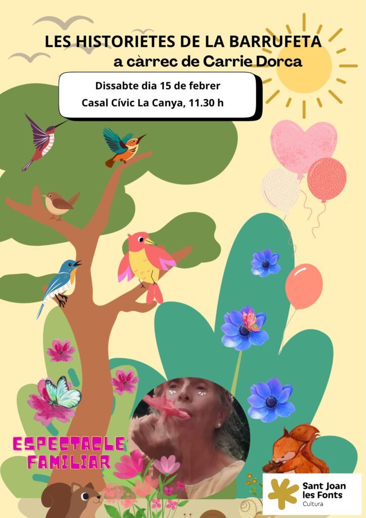 Agenda 😸 Espectacle familiar: Les historietes de la Barrufeta Dissabte 15 de febrer a les 11.30 h | Casal Cívic de la Canya A càrrec de Carrie Dorca. 📅 Dissabte 15 de febrer ⏰ 11:30h 📍 Casal Cívic de la Canya < Entrada AnteriorEntrada Posterior >