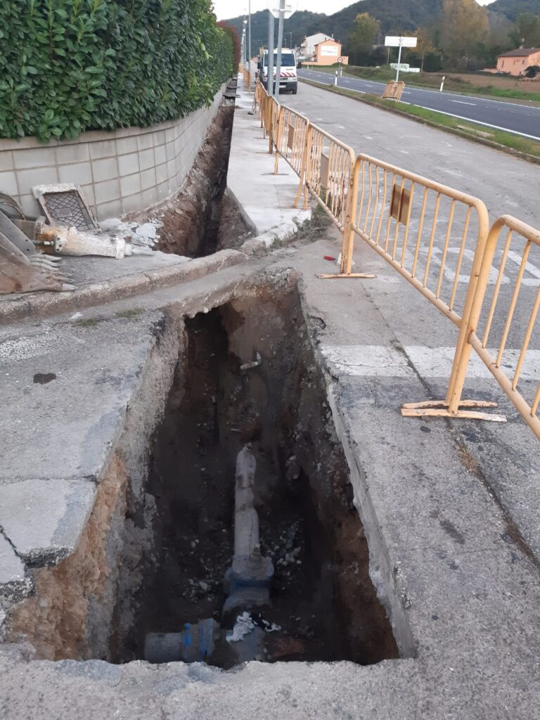 Els treballs del servei municipal d’aigües van detectar, ara fa algunes setmanes, diverses fuites importants a la xarxa de subministrament del carrer paral·lel a la carretera de Sant Pau de Segúries (Sector de la Roureda a la Canya), provocades pel mal estat de la canonada antiga.