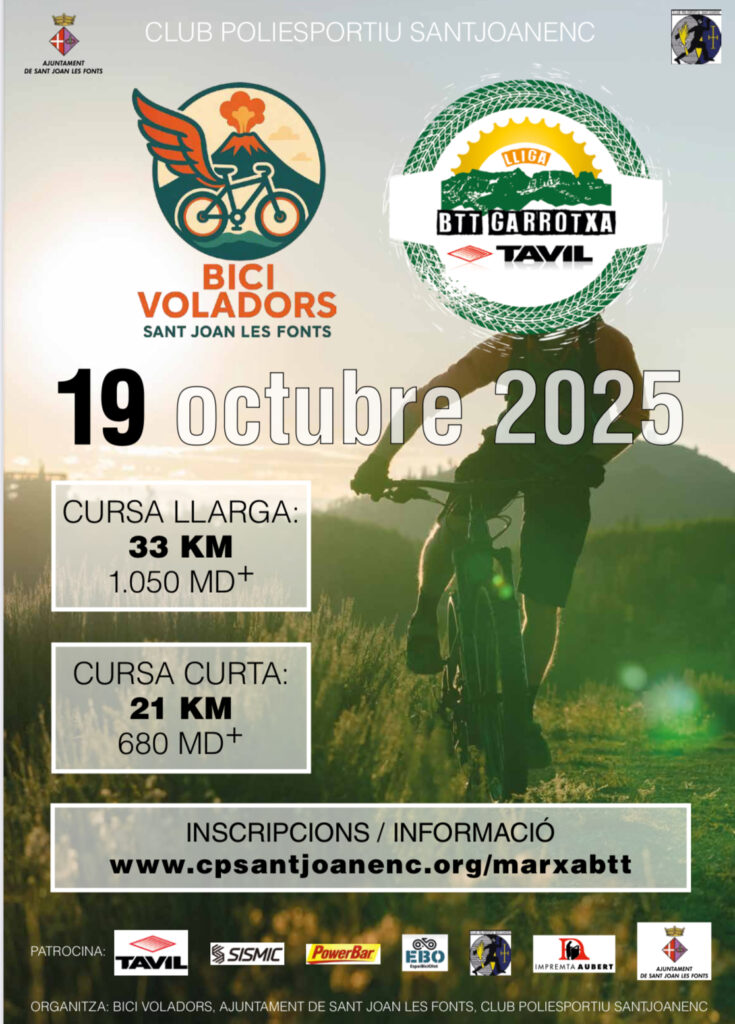 Inclosa a la lliga BTT Garrotxa TAVIL 2025. Dos recorreguts, de 21 i 36 quilòmetres. Inscriu-te al web cpsantjoanenc.org.